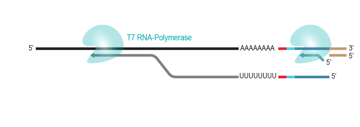 During a 2-hour (optional: overnight) in vitro transcription step the original mRNA template is copied repeatedly by linear amplification.